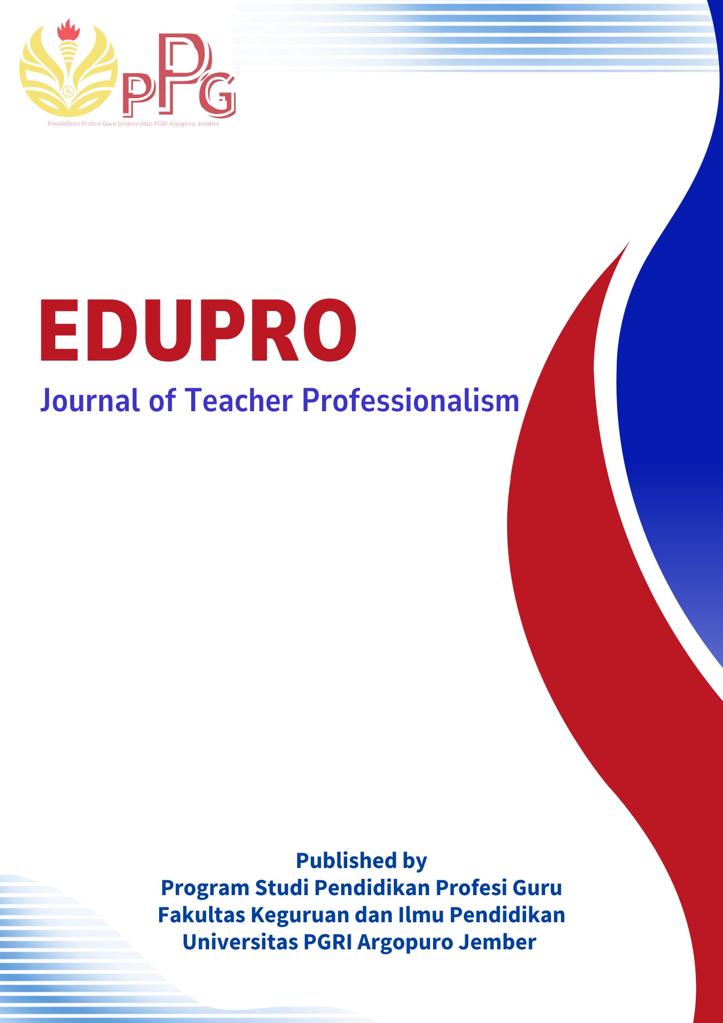 EduPro: Journal of Teacher Professionalism merupakan jurnal ilmiah yang menjadi wahana diseminasi hasil penelitian, kajian konseptual, dan praktik terbaik dalam pengembangan profesionalisme guru. Jurnal ini mengangkat isu-isu strategis terkait penguatan kompetensi pedagogik, profesional, sosial, dan kepribadian guru, serta inovasi pembelajaran dan Pendidikan Profesi Guru (PPG) sebagai bagian integral dari peningkatan mutu pendidikan. Jurnal EduPro berupaya menjembatani teori dan praktik pendidikan sehingga hasil kajian yang diterbitkan dapat memberikan kontribusi nyata bagi peningkatan kinerja guru dan efektivitas pembelajaran. Jurnal EduPro: Journal of Teacher Professionalism diterbitkan 4 kali dalam setahun yaitu pada edisi Februari, Mei, Agustus, dan November. Setiap artikel yang diterbitkan melalui proses peer-review yang ketat untuk menjamin orisinalitas, kualitas akademik, dan peningkatan kualitas pendidikan secara berkelanjutan.